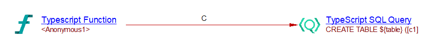 In this example, a ‘TypeScript SQL Query’ object is created and a callLink between the anonymous function and that query is added. The SQL Analyzer can then link that query with the corresponding table if the table exists: